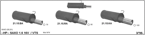 CITROËN SAXO (S0, S1) 1.6 - Sportovní tlumič hluku od 2/1996 do 4/2004, 1587 ccm, 88 kW, 120 hp, NFX (TU5JP4), Šikmá zadní část