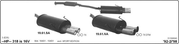 BMW 3 (E36) 318 is - Sportovní tlumič hluku od 1/1996 do 5/1998, 1895 ccm, 103 kW, 140 hp, M44 B19 (194S1), limuzína