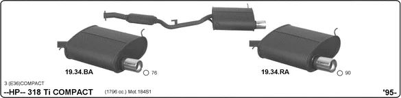 BMW 3 Compact (E36) 318 ti - Sportovní tlumič hluku od 1/1996 do 8/1999, 1895 ccm, 103 kW, 140 hp, M44 B19 (194S1), Šikmá zadní část