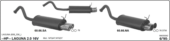 RENAULT LAGUNA I (B56_, 556_) 2.0 16V (B56D, B56M) - Sportovní tlumič hluku od 6/1995 do 3/2001, 1948 ccm, 102 kW, 139 hp, N7Q 700, N7Q 704, Šikmá zadní část