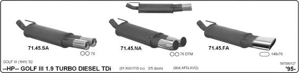 VW GOLF III (1H1) 1.9 TDI - Sportovní tlumič hluku od 4/1996 do 8/1997, 1896 ccm, 81 kW, 110 hp, AFN, Šikmá zadní část