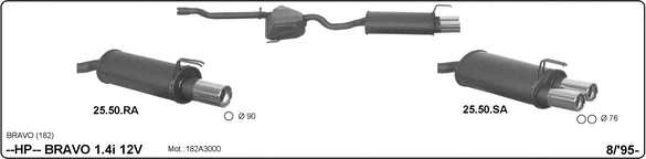 FIAT BRAVO I (182_) 1.4 (182.AA) - Sportovní tlumič hluku od 10/1995 do 10/2001, 1370 ccm, 59 kW, 80 hp, 182 A3.000, Šikmá zadní část