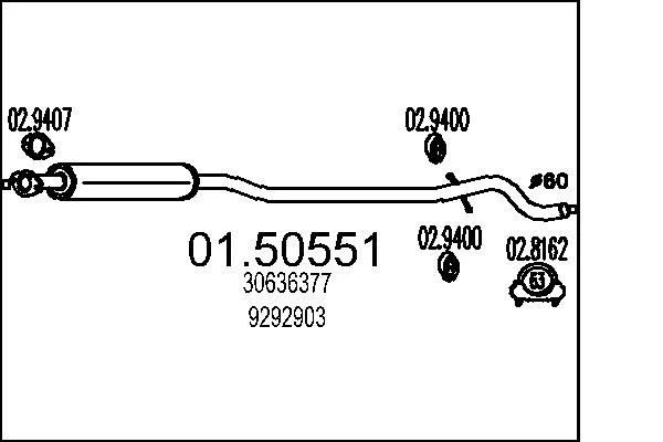 VOLVO S60 I (384) 2.4 - Tlumič hluku od 7/2000 do 4/2010, 2435 ccm, 103 kW, 140 hp, B 5244 S2, limuzína