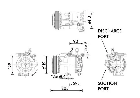 | řemenice | s řemenicí pro žebrovaný klínový řemen |