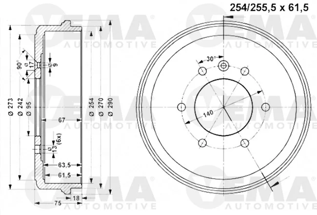Vnější průměr brzdového bubnu [mm] | 290 mm |