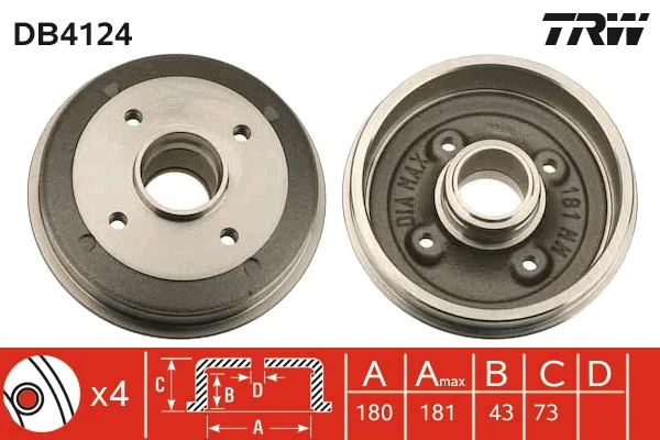 | Vnitřní průměr brzdového bubnu [mm] | 180 mm |