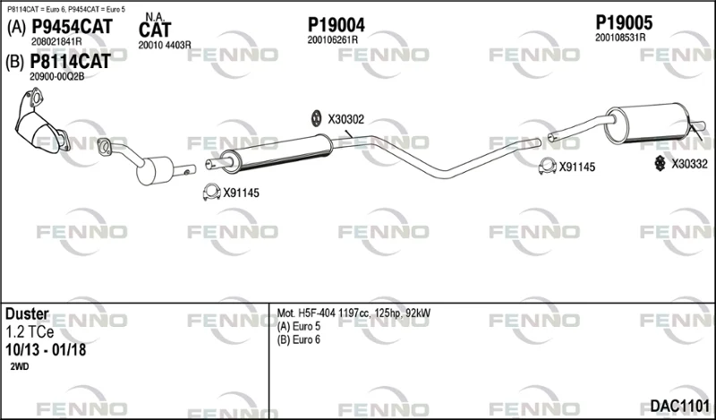 DACIA DUSTER (HS_) 1.2 TCe 125 - Výfukový systém - kompletní od 10/2013 do 1/2018, 1197 ccm, 92 kW, 125 hp, H5F 404, H5F 408, SUV