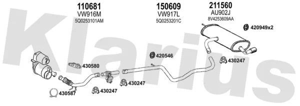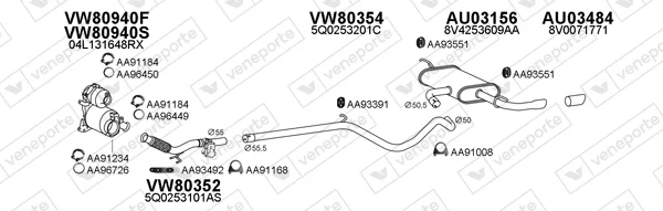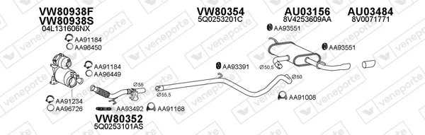 AUDI A3 Sportback (8VA, 8VF) 1.6 TDI - Výfukový systém - kompletní od 9/2013 do 10/2020, 1598 ccm, 81 kW, 110 hp, CRKB, CXXB, DBKA, Šikmá zadní část