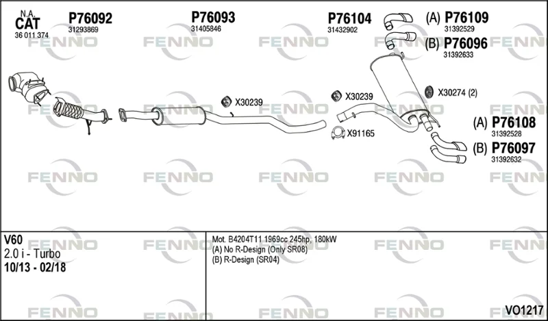 VOLVO V60 I (155) T5 - Výfukový systém - kompletní