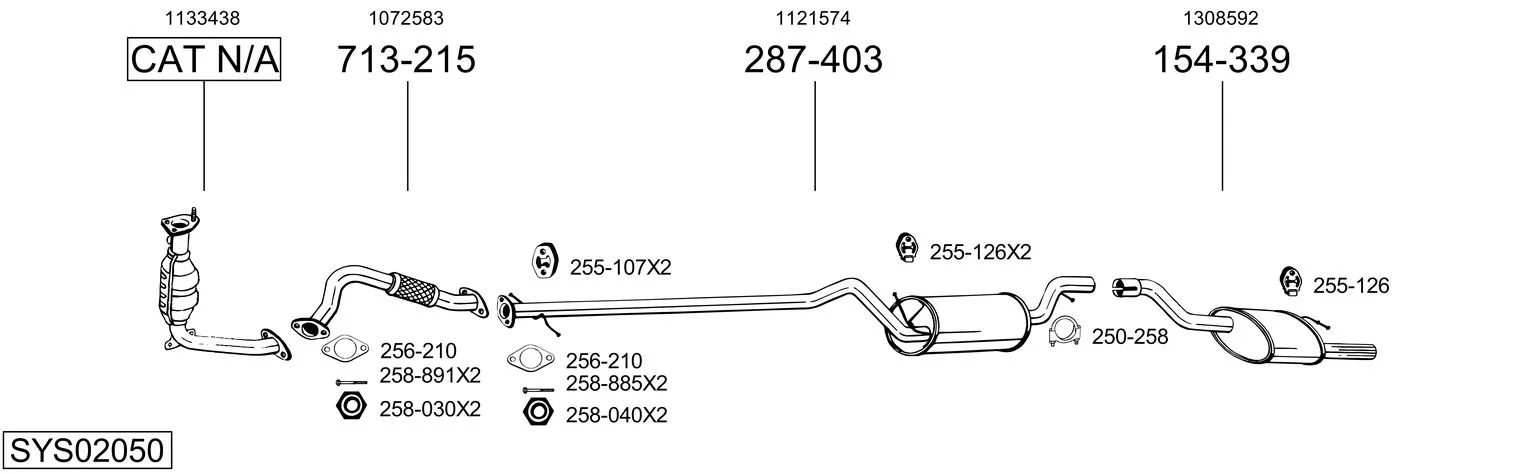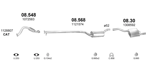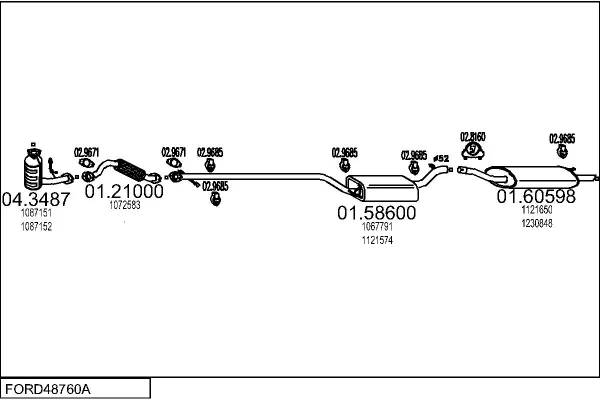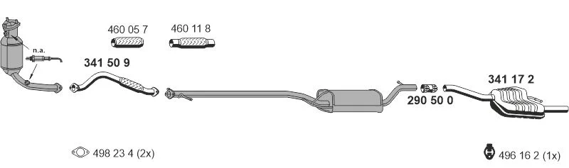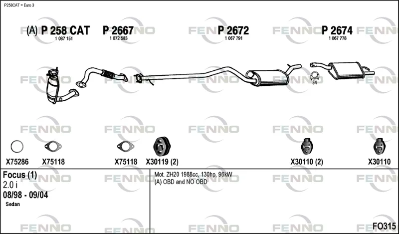 FORD FOCUS I limuzína (DFW) 2.0 16V - Výfukový systém - kompletní od 2/1999 do 11/2004, 1988 ccm, 96 kW, 131 hp, EDDB, EDDC, EDDD, EDDF, limuzína