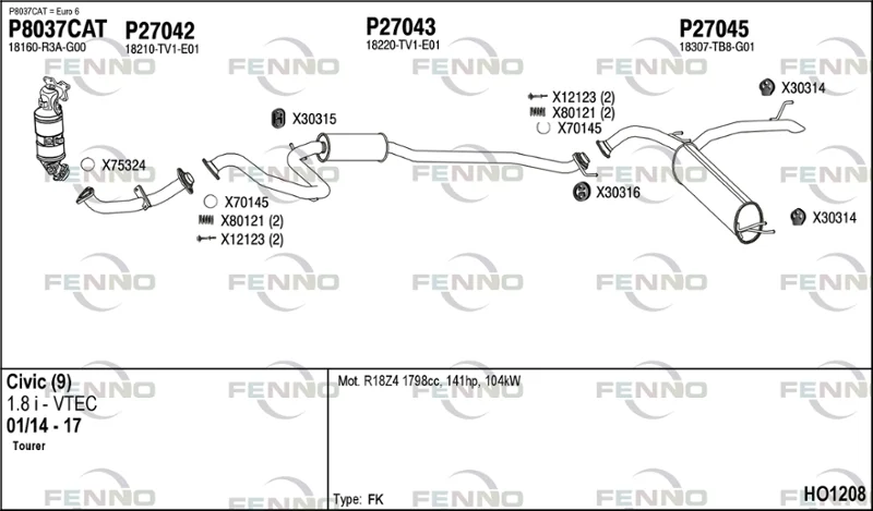 HONDA CIVIC IX Tourer (FK) 1.8 i-VTEC (FK2) - Výfukový systém - kompletní od 1/2014 do 12/2016, 1798 ccm, 104 kW, 141 hp, R18Z4, kombi