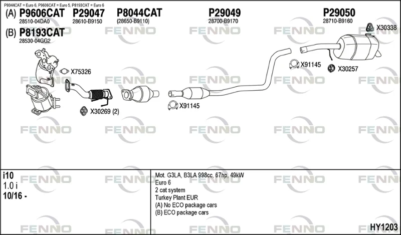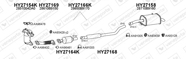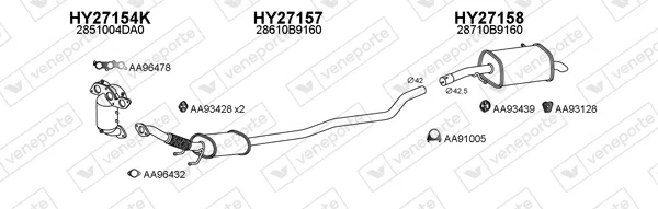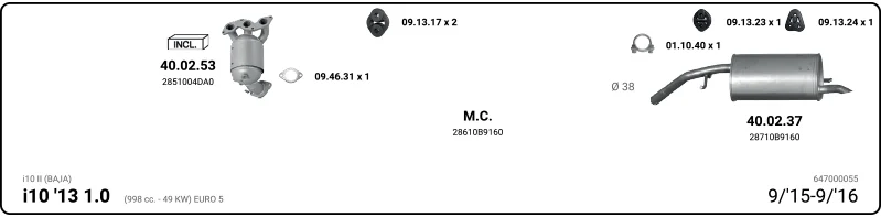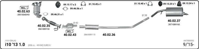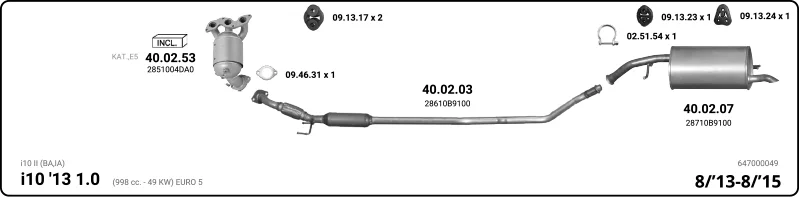 HYUNDAI i10 II (BA, IA) 1.0 - Výfukový systém - kompletní od 8/2013 do 12/2019, 998 ccm, 49 kW, 67 hp, G3LA, Šikmá zadní část
