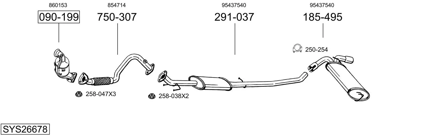 OPEL MOKKA / MOKKA X (J13) 1.4 LPG (_76) - Výfukový systém - kompletní od 4/2013, 1364 ccm, 103 kW, 140 hp, A 14 NET, B 14 NET, D 14 NET, SUV