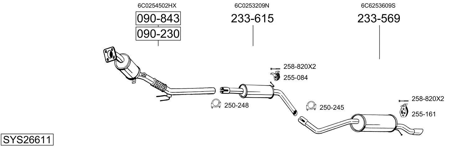 VW POLO V (6R1, 6C1) 1.0 - Výfukový systém - kompletní od 1/2014 do 10/2017, 999 ccm, 44 kW, 60 hp, CHYA, Šikmá zadní část