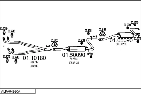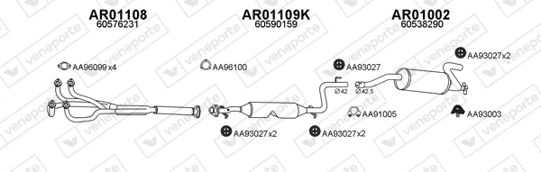 ALFA ROMEO 33 (907_) 1.4 i.e. (907.A3A, 907.A3B) - Výfukový systém - kompletní od 6/1991 do 9/1994, 1351 ccm, 65 kW, 88 hp, AR 30753, AR 30755, Šikmá zadní část