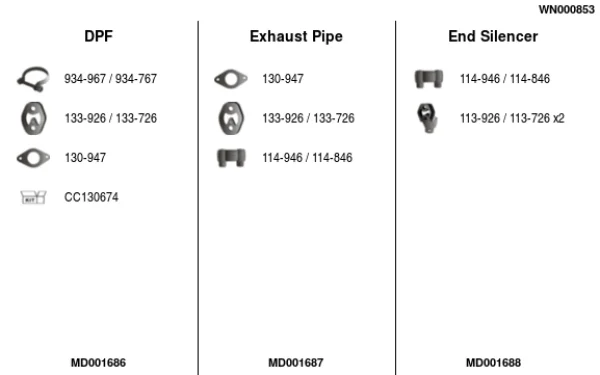 FORD TOURNEO COURIER B460 velkoprostorová limuzína 1.6 TDCi - Výfukový systém - kompletní od 2/2014 do 12/2023, 1560 ccm, 70 kW, 95 hp, T3CA, T3CB, T3CC, velkoprostorová limuzína