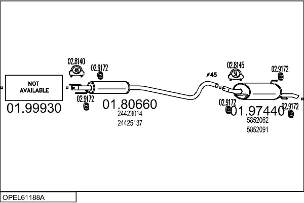 OPEL ASTRA G limuzína (T98) 1.2 16V (F69) - Výfukový systém - kompletní od 9/1998 do 9/2000, 1199 ccm, 48 kW, 65 hp, X 12 XE, limuzína