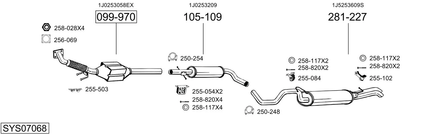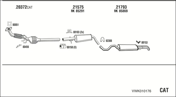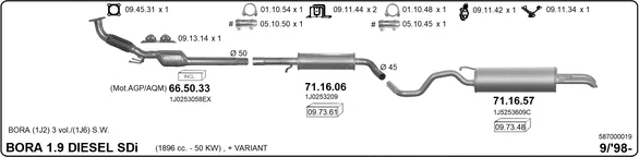VW BORA I (1J2) 1.9 SDI - Výfukový systém - kompletní od 10/1998 do 5/2005, 1896 ccm, 50 kW, 68 hp, AGP, AQM, limuzína
