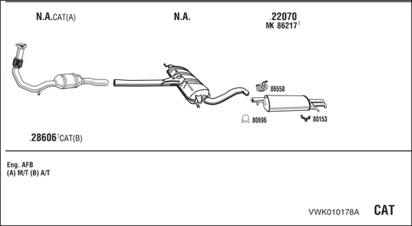 VW PASSAT B5 Variant (3B5) 2.5 TDI - Výfukový systém - kompletní od 7/1998 do 11/2000, 2496 ccm, 110 kW, 150 hp, AFB, AKN, kombi