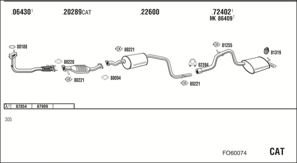 FORD MONDEO II (BAP) 1.6 i 16V - Výfukový systém - kompletní od 5/1998 do 9/2000, 1597 ccm, 70 kW, 95 hp, L1L, L1N, L1Q, Šikmá zadní část
