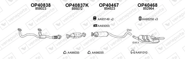 OPEL VECTRA A Šikmá zadní část (J89) 2.5 V6 (F68, M68) - Výfukový systém - kompletní od 2/1993 do 11/1995, 2498 ccm, 125 kW, 170 hp, C 25 XE, Šikmá zadní část