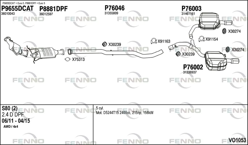 VOLVO S80 II (124) D5 AWD - Výfukový systém - kompletní od 6/2011 do 4/2015, 2400 ccm, 158 kW, 215 hp, D 5244 T15, limuzína