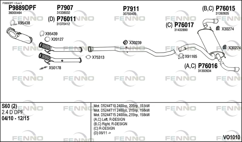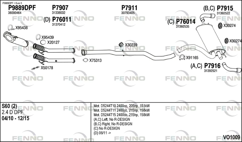 VOLVO S60 II (134) D5 - Výfukový systém - kompletní od 4/2011 do 12/2015, 2400 ccm, 158 kW, 215 hp, D 5244 T11, D 5244 T15, limuzína