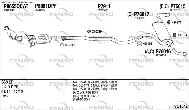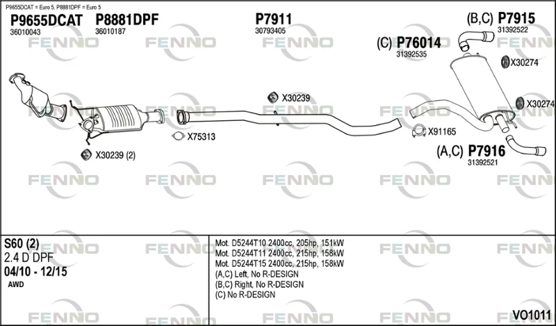 VOLVO S60 II (134) D5 AWD - Výfukový systém - kompletní od 4/2011 do 12/2015, 2400 ccm, 158 kW, 215 hp, D 5244 T15, limuzína