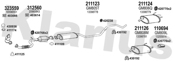 OPEL INSIGNIA A limuzína (G09) 1.4 (69) - Výfukový systém - kompletní od 4/2011 do 3/2017, 1364 ccm, 103 kW, 140 hp, A 14 NET, B 14 NET, limuzína