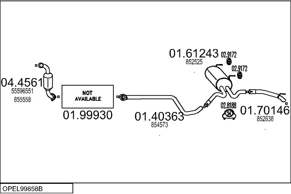 OPEL ASTRA J GTC 1.4 (08) - Výfukový systém - kompletní od 10/2011 do 4/2018, 1364 ccm, 88 kW, 120 hp, A 14 NEL, B 14 NEL, Šikmá zadní část