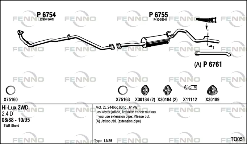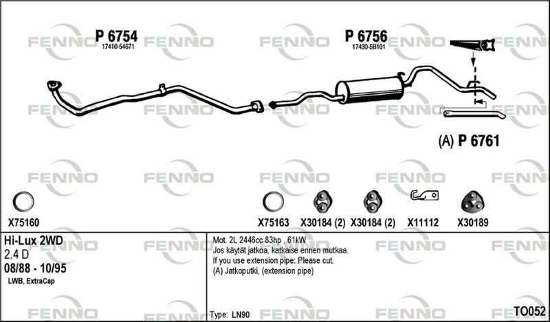TOYOTA HILUX V pick-up (_N8_, _N9_, _N10_, _N11_) 2.4 D (LN90_, LN90R) - Výfukový systém - kompletní od 3/1995 do 8/1997, 2446 ccm, 58 kW, 79 hp, 2L, pick-up