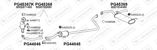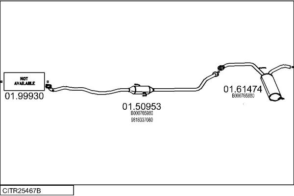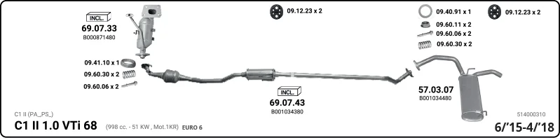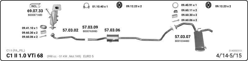 CITROËN C1 II (PA_, PS_) 1.0 VTi 68 - Výfukový systém - kompletní od 4/2014 do 4/2018, 998 ccm, 51 kW, 69 hp, CFB (1KR), Šikmá zadní část