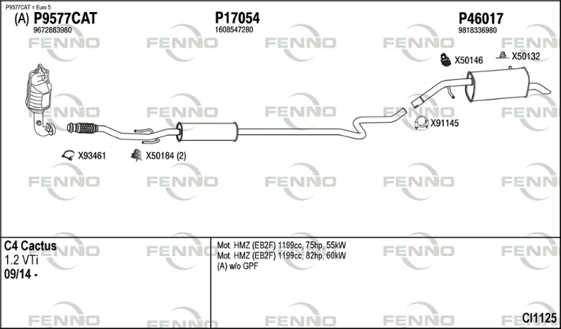 CITROËN C4 CACTUS 1.2 VTi 82 - Výfukový systém - kompletní od 9/2014, 1199 ccm, 60 kW, 82 hp, HMZ (EB2F), Šikmá zadní část