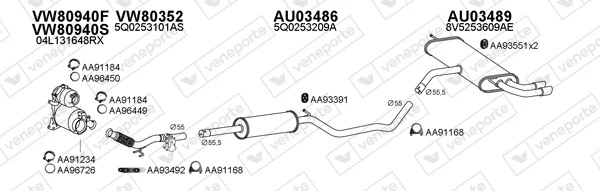 AUDI A3 Kabriolet (8V7, 8VE) 2.0 TDI - Výfukový systém - kompletní od 5/2014 do 5/2017, 1968 ccm, 135 kW, 184 hp, CUNA, DGCA, Kabriolet