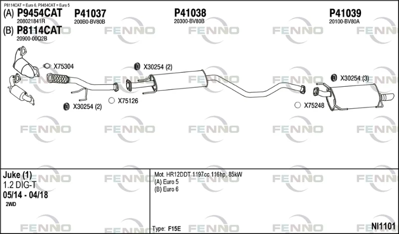 NISSAN JUKE (F15) 1.2 DIG-T - Výfukový systém - kompletní od 5/2014 do 12/2019, 1197 ccm, 85 kW, 115 hp, HRA2DDT, SUV