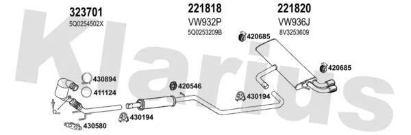 AUDI A3 (8V1, 8VK) 1.4 TFSI - Výfukový systém - kompletní od 5/2014 do 8/2016, 1395 ccm, 92 kW, 125 hp, CXSB, CZCA, Šikmá zadní část