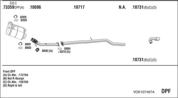 VOLVO V60 I (155) D5 AWD - Výfukový systém - kompletní od 4/2014 do 12/2015, 2400 ccm, 169 kW, 230 hp, D 5244 T15, kombi
