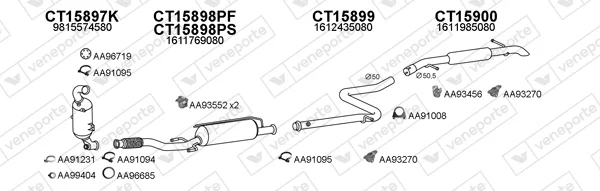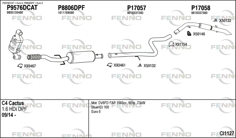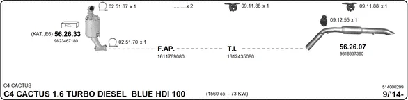 CITROËN C4 CACTUS 1.6 BlueHDi 100 - Výfukový systém - kompletní od 9/2014 do 6/2018, 1560 ccm, 73 kW, 99 hp, BHY (DV6FD), Šikmá zadní část