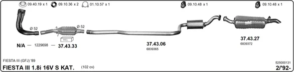FORD FIESTA III (GFJ) 1.8 16V - Výfukový systém - kompletní od 2/1992 do 12/1995, 1796 ccm, 77 kW, 105 hp, RDB, Šikmá zadní část