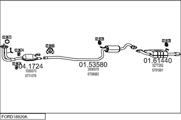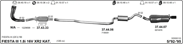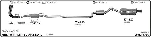 FORD FIESTA III (GFJ) 1.8 XR2i 16V - Výfukový systém - kompletní od 2/1992 do 12/1995, 1796 ccm, 96 kW, 130 hp, RQC, Šikmá zadní část