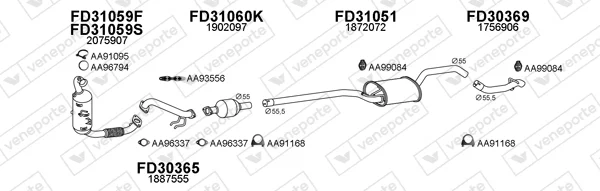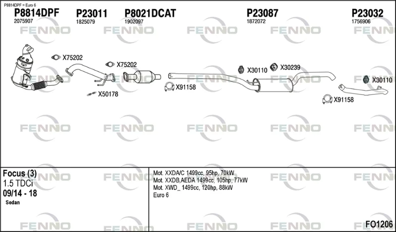 FORD FOCUS III limuzína 1.5 TDCi - Výfukový systém - kompletní od 11/2014 do 2/2020, 1499 ccm, 88 kW, 120 hp, XWDA, XWDB, XWDC, XWDD, XWDE, limuzína