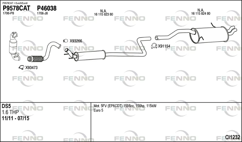 CITROËN DS5 1.6 THP 155 - Výfukový systém - kompletní od 11/2011 do 7/2015, 1598 ccm, 115 kW, 156 hp, 5FV (EP6CDT), Šikmá zadní část