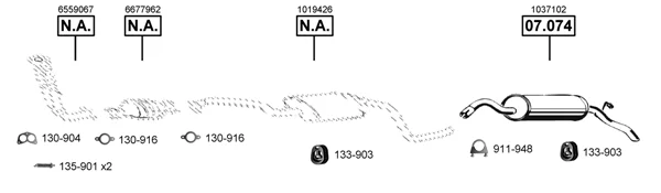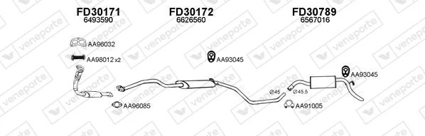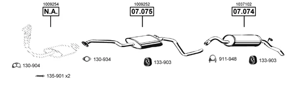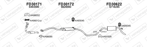 FORD ESCORT V (AAL, ABL) 1.8 D - Výfukový systém - kompletní od 7/1990 do 1/1995, 1753 ccm, 44 kW, 60 hp, RTE, RTF, RTH, Šikmá zadní část
