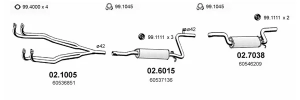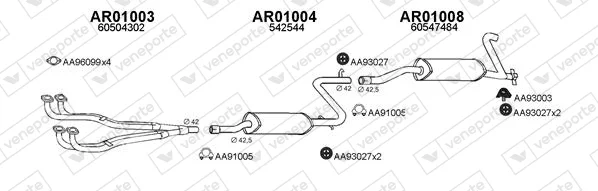 ALFA ROMEO 33 Sportwagon (907_) 1.4 i.e. (907B3B) - Výfukový systém - kompletní od 6/1991 do 9/1994, 1351 ccm, 65 kW, 88 hp, AR 30753, AR 30755, kombi