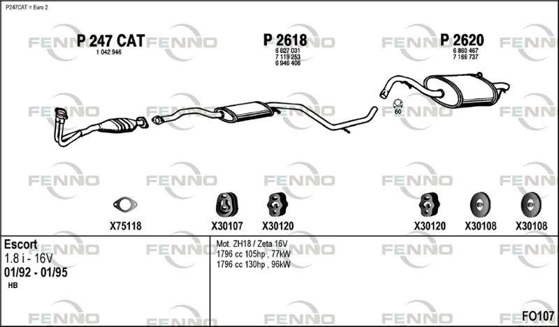 FORD ESCORT V (AAL, ABL) 1.8 16V XR3i - Výfukový systém - kompletní od 2/1992 do 1/1995, 1796 ccm, 77 kW, 105 hp, RDA, Šikmá zadní část