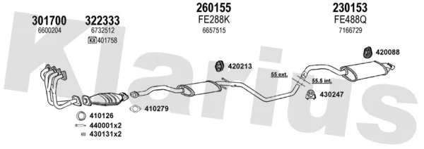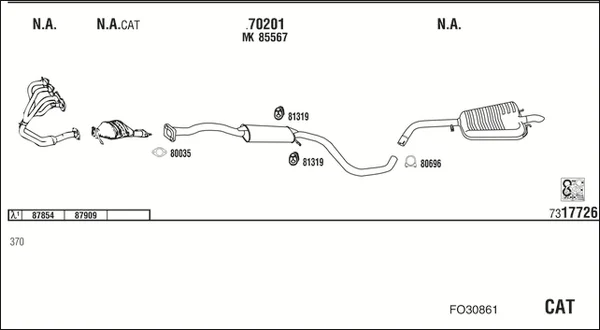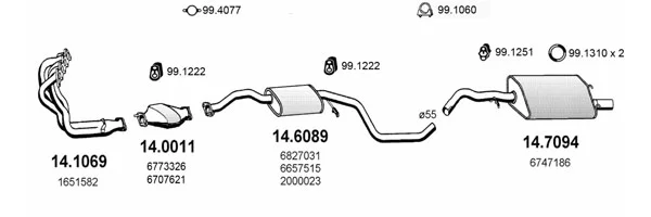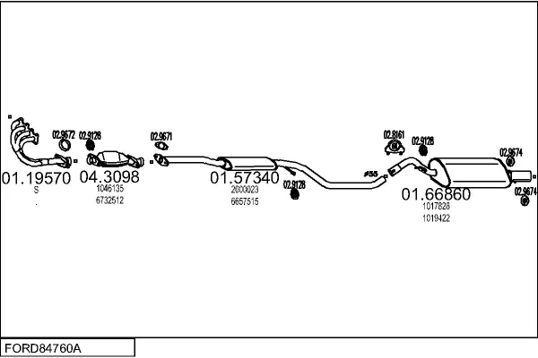 FORD ESCORT V (AAL, ABL) RS 2000 - Výfukový systém - kompletní od 5/1991 do 1/1995, 1998 ccm, 110 kW, 150 hp, N7A, Šikmá zadní část