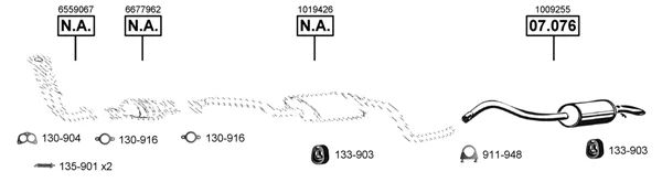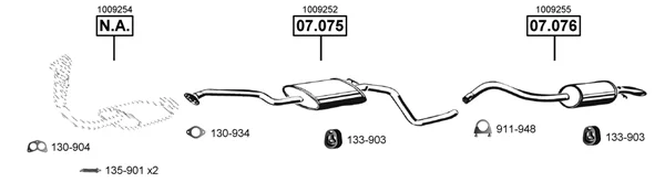 FORD ORION III (GAL) 1.8 D - Výfukový systém - kompletní od 11/1990 do 12/1993, 1753 ccm, 44 kW, 60 hp, RTE, RTF, RTH, limuzína