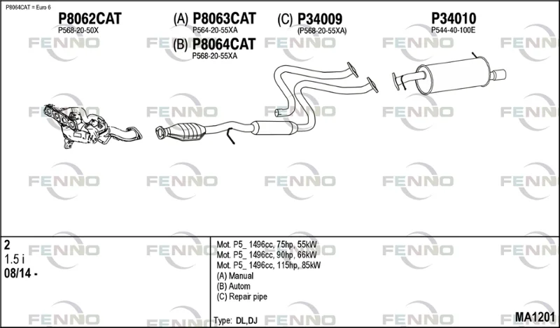 MAZDA 2 Šikmá zadní část (DL, DJ) 1.5 - Výfukový systém - kompletní od 8/2014, 1496 ccm, 55 kW, 75 hp, P5X0, P5X2, P5Y5, P5Y8, P5Z7, P5Z8, P5Z9, Šikmá zadní část
