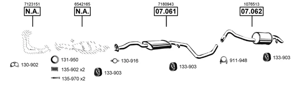 FORD ORION III (GAL) 1.4 - Výfukový systém - kompletní od 7/1990 do 12/1993, 1391 ccm, 52 kW, 71 hp, F6F, F6G, limuzína