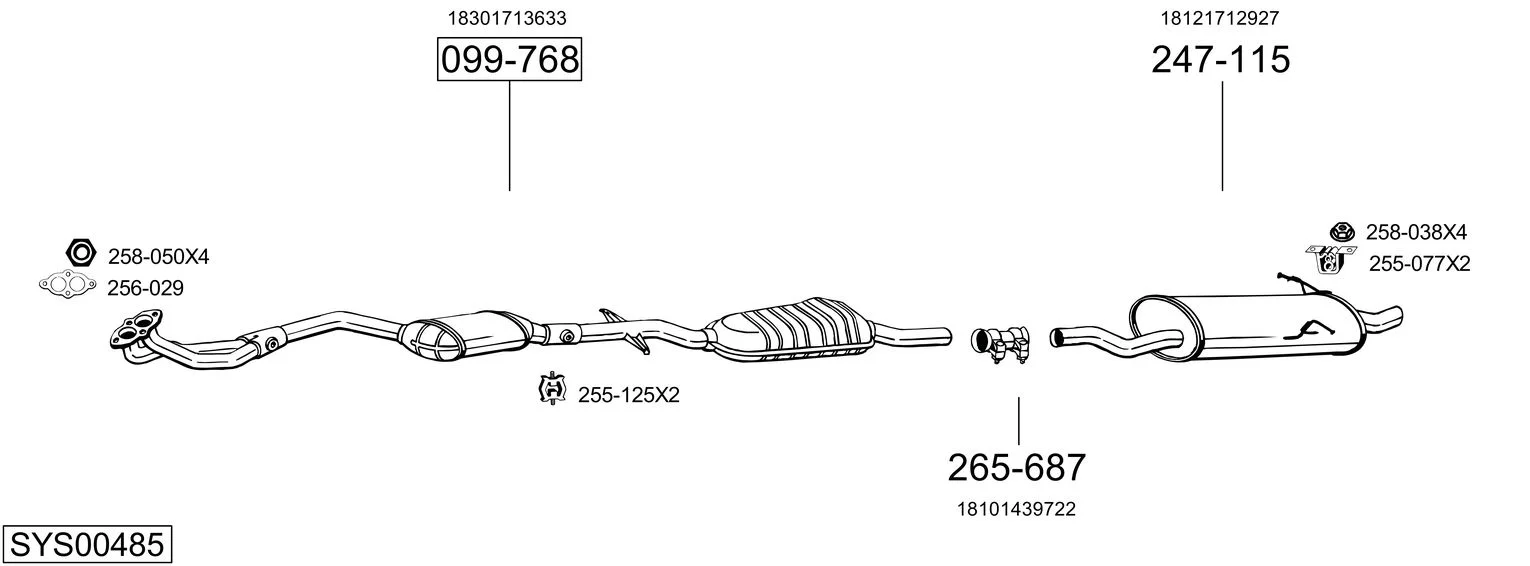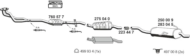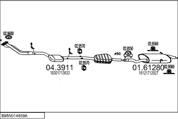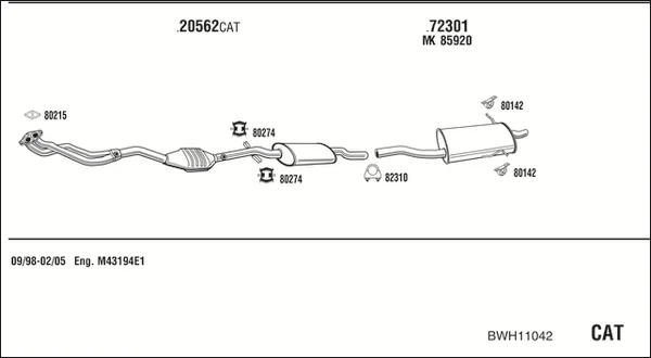 BMW 3 (E46) 316 i - Výfukový systém - kompletní od 12/1998 do 2/2002, 1895 ccm, 77 kW, 105 hp, M43 B19 (194E1), limuzína